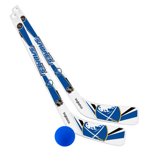 NHL Buffalo Sabres Breakaway Set. Includes one (1) plastic player 18" mini stick one (1) plastic goalie 20" mini stick and one (1) foam ball- It's ...
