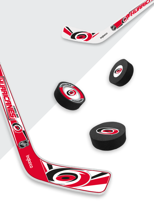 NHL Carolina Hurricanes Breakaway Set. Includes one (1) plastic player 18" mini stick one (1) plastic goalie 20" mini stick and one (1) foam ball- ...