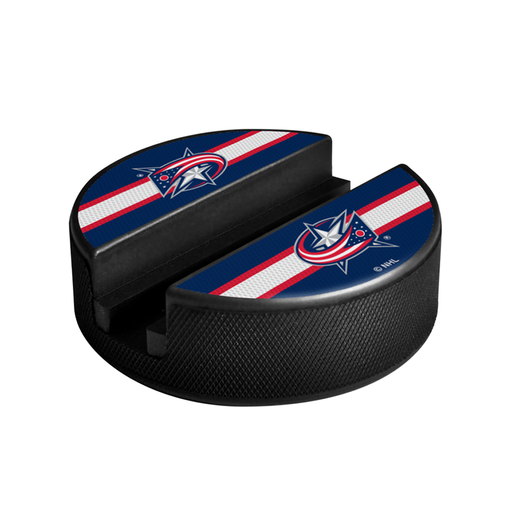 NHL Columbus Blue Jackets Hockey Puck Media Holder. Fits most smart phones (horizontally or vertically).