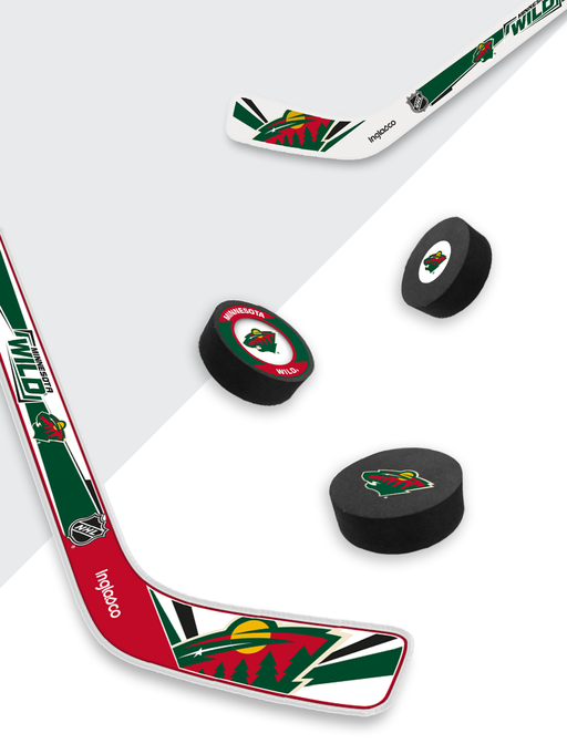 NHL Minnesota Wild Breakaway Set. Includes one (1) plastic player 18" mini stick one (1) plastic goalie 20" mini stick and one (1) foam ball- It's ...