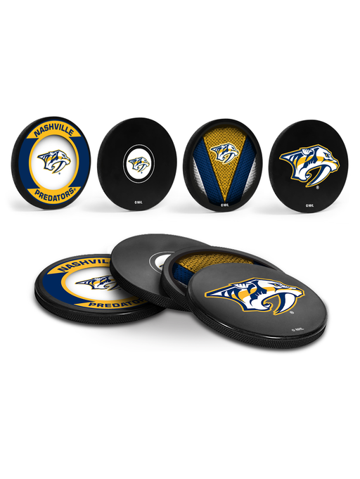View full detailsNHL Nashville Predators Ultimate Fan 3-Pack. Includes: 1 NHL Official Classic Souvenir Hockey Puck / 4 Coasters / 1 Media Device Holder
