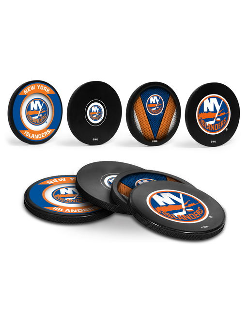 NHL New York Islanders Hockey Puck Drink Coasters (4-Pack) In Cube