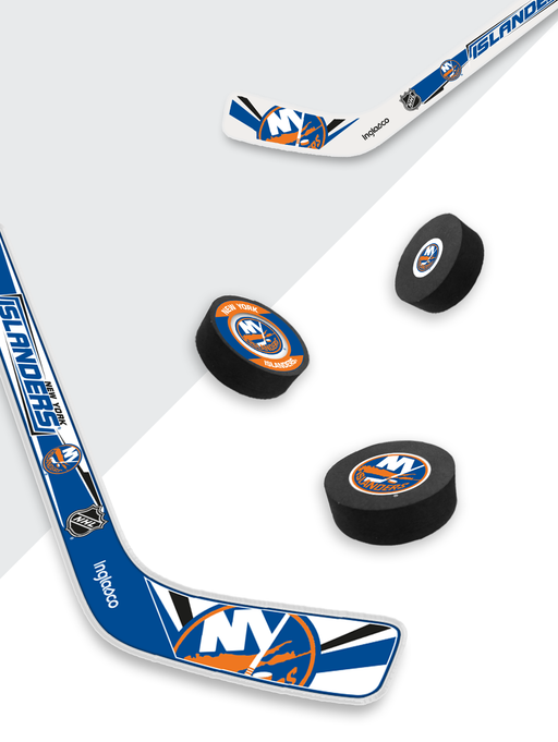 NHL New York Islanders Breakaway Set. Includes one (1) plastic player 18" mini stick one (1) plastic goalie 20" mini stick and one (1) foam ball- I...