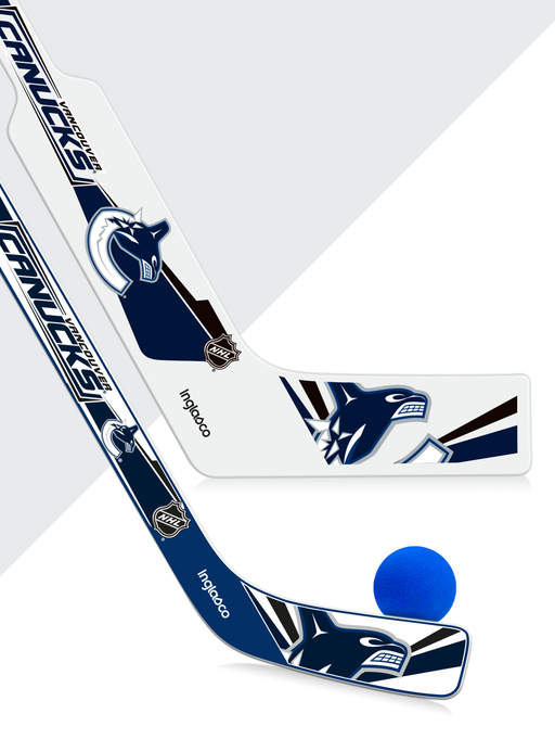 NHL Vancouver Canucks Breakaway Set. Includes one (1) plastic player 18" mini stick one (1) plastic goalie 20" mini stick and one (1) foam ball- It...