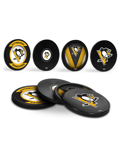 NHL Pittsburgh Penguins Hockey Puck Drink Coasters (4-Pack) In Cube