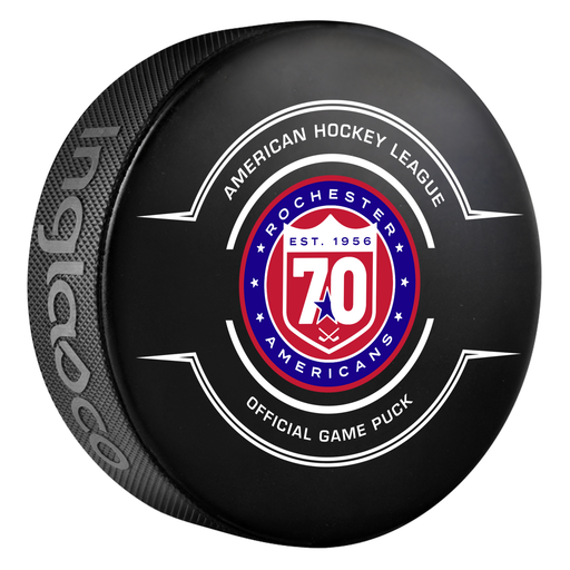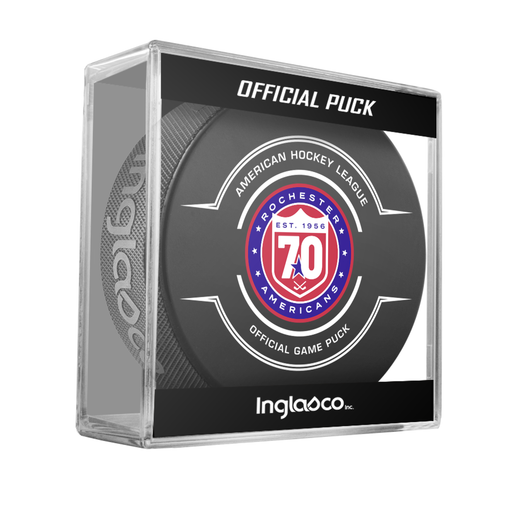 AHL Rochester Americans 2025-26 Official Game Hockey Puck In Cube