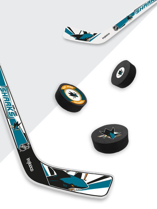 NHL San Jose Sharks Breakaway Set. Includes one (1) plastic player 18" mini stick one (1) plastic goalie 20" mini stick and one (1) foam ball- It's...