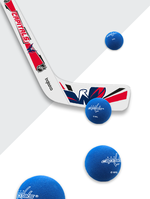 NHL Washington Capitals Breakaway Set. Includes one (1) plastic player 18" mini stick one (1) plastic goalie 20" mini stick and one (1) foam ball- ...